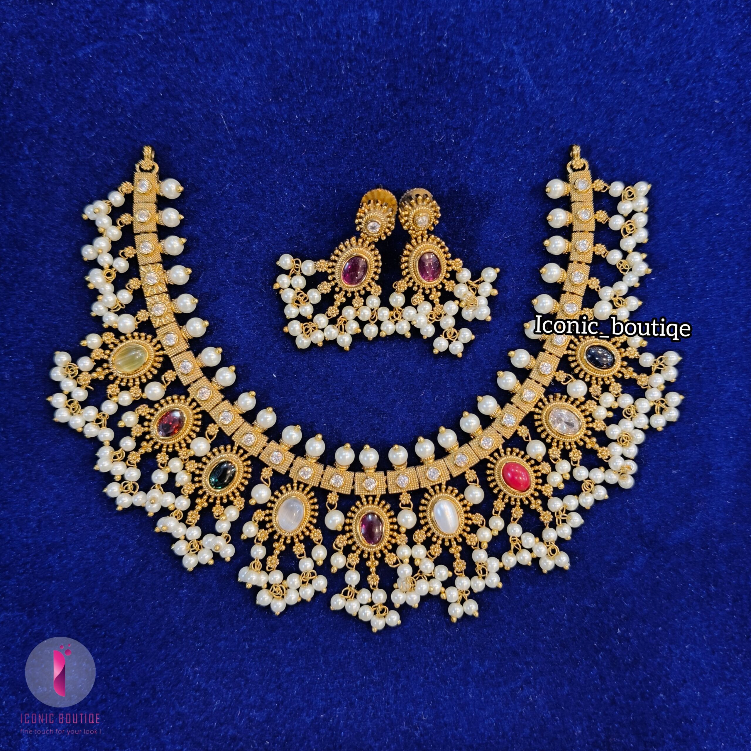 Premium Matte Finish Navaratna Necklace